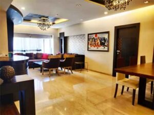 A Beautiful 4 BHK - LL" (Likely 4 Bedroom, Hall, Kitchen, with a Lower Level layout) available at Dawn , Almeida Park in Bandra West, Mumbai.Available for rent, is semi-furnished, and includes two car parks, with a possession date of November 1st and a monthly rent of ₹3.25 Lacs.